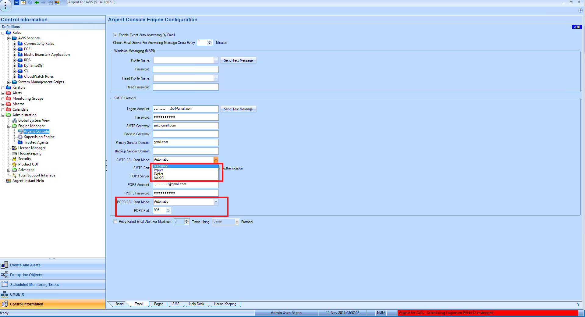 For example, Gmail and Yahoo use ‘Automatic’ as SSL start mode for both SMTP and POPS, port 465 for SMTP and 995 for POP3