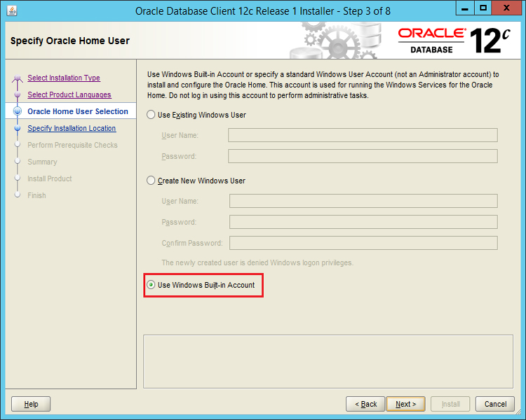 Choose ‘Windows Built-in Account’ as shown above and click ‘Next’ button