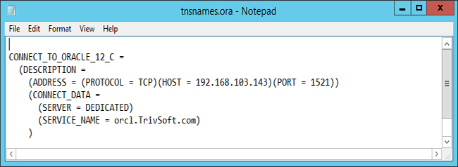 For this, create a file, named ‘tnsnames.ora’ in the Network\Admin folder of the Oracle installation path